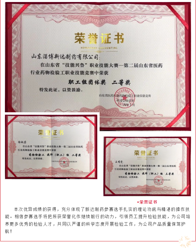 公司新闻 山东淄博新达制药有限公司 首页>>新闻中心>>公司新闻 喜报!新达制药在山东省“技能兴鲁”职业技能大赛中取得优异成绩! 发布时间:2024-11-12 上一篇:喜报!新达制药女篮英勇夺冠! 下一篇:热烈祝贺新华制药全资子公司---新达制药取得非布司他片注册证书!