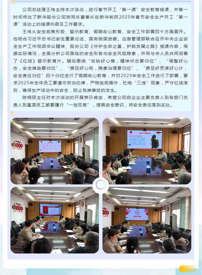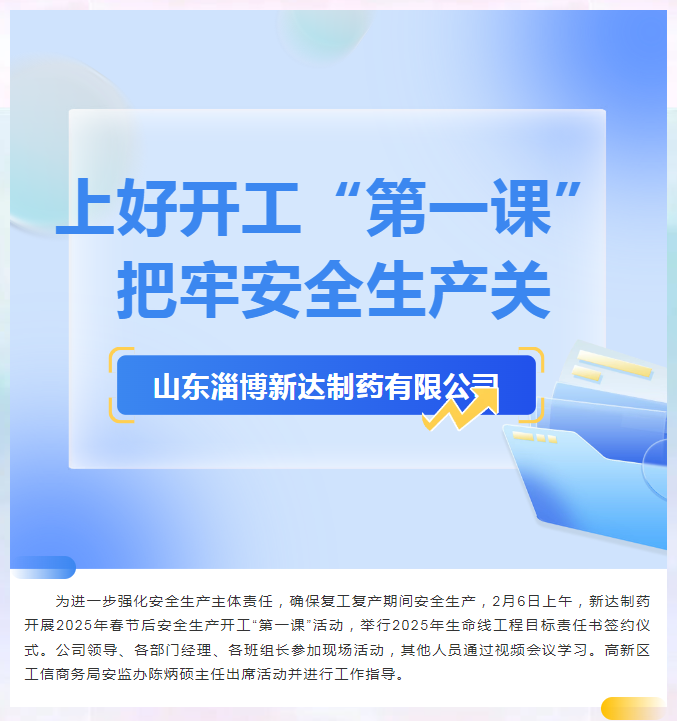 公司新闻 山东淄博新达制药有限公司 首页>>新闻中心>>公司新闻 上好开工“第一课”,把牢安全生产关 发布时间:2025-02-07 上一篇:真情奉献助社区,携手共建暖民心 下一篇:献企业员工热血,筑生命希望桥梁