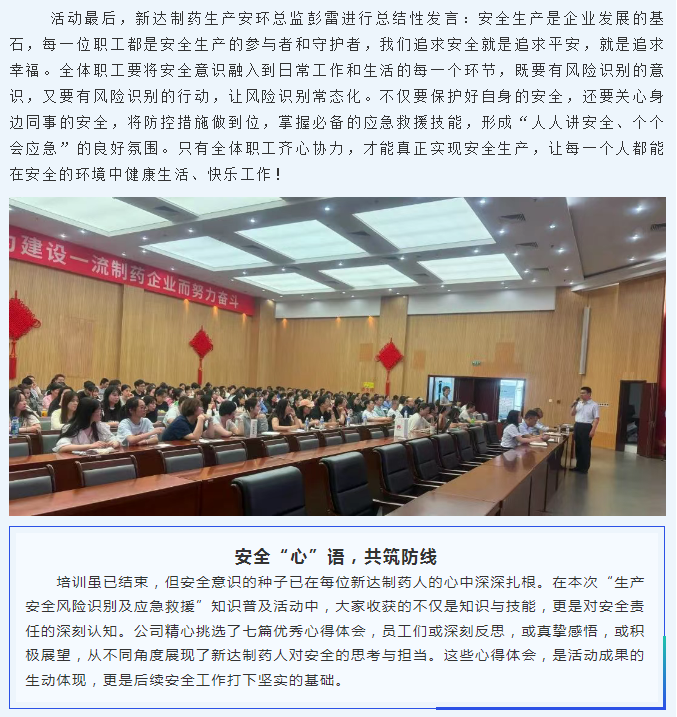 人人讲安全、个个会应急——新达制药开展全员《生产安全风险识别及应急救援》知识培训